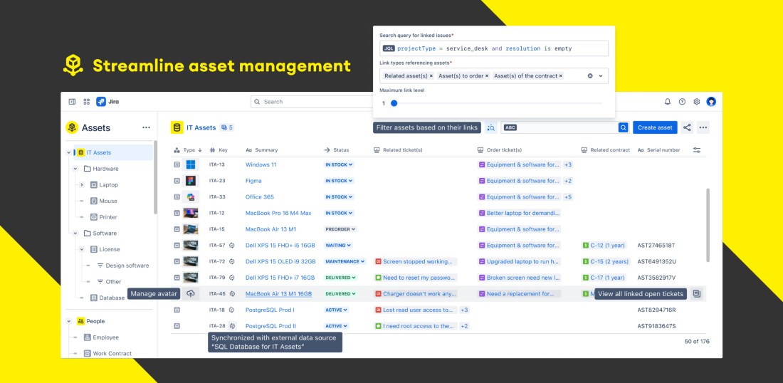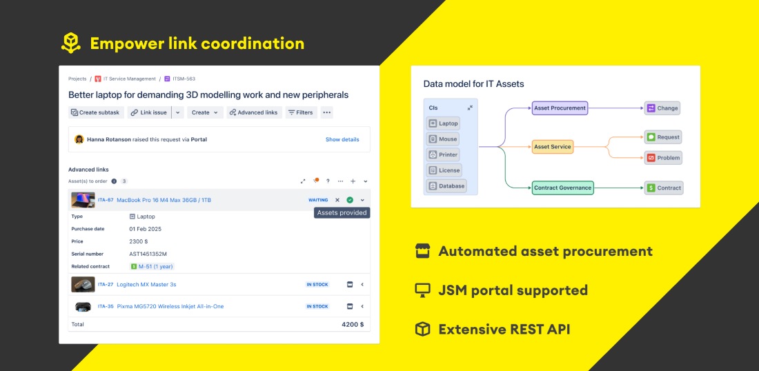 Transform native Jira issues into a powerful Configuration Management Database (CMDB) to manage and track IT assets, hardware, and dependencies directly within Jira. Create flexible data models and visualize complex relationships, making it the ideal solution for enterprise ITSM.