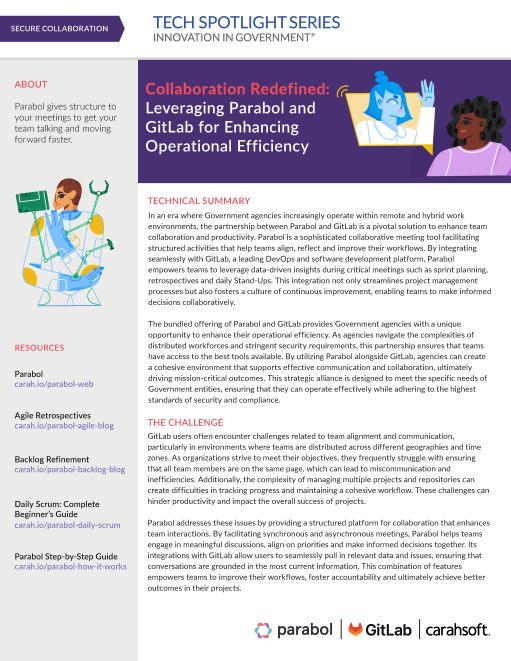 In today's fast-evolving digital landscape, public sector organizations face unique challenges that demand innovative solutions. Parabol, a Technical Readiness Level 9 application, stands at the forefront of addressing these challenges, offering a comprehensive, browser-based platform designed to streamline Agile meetings, decision-making processes, and pivotal workflows essential for digital transformation. As a software-as-a-service (SaaS) application, Parabol is available and proven up to Impact Level 4, making it a secure choice for government agencies and defense departments requiring top-tier data protection and operational reliability.